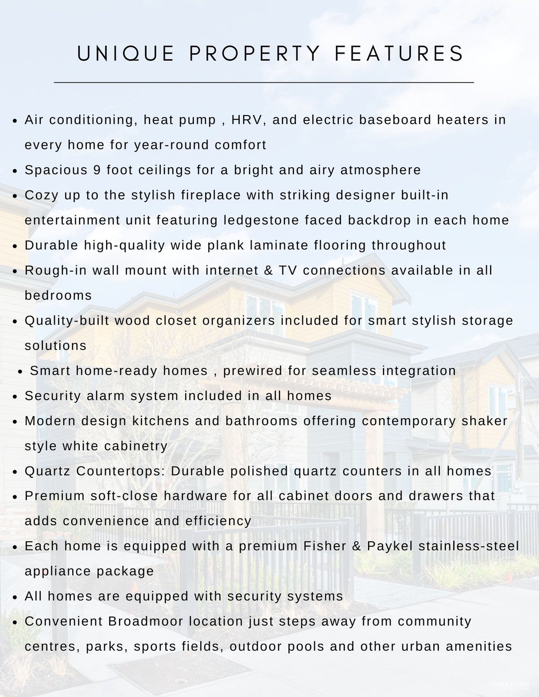 A collection of 10 custom built luxurious townhomes built by reputable builder iDream Homes. Located in the coveted Broadmoor neighborhood of Richmond, walking distance to shopping, schools, recreation facilities and transit. Choose from unique offering of 2 and 3 story homes with side by side and tandem garage parking options available.