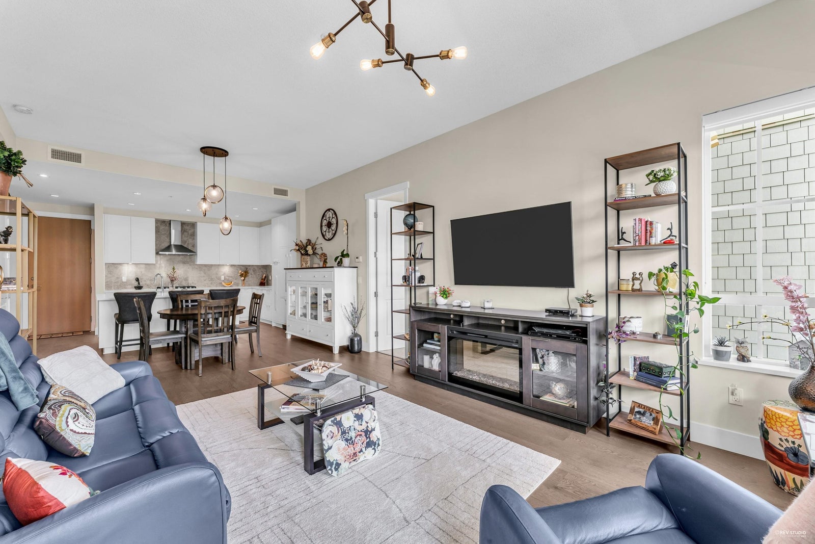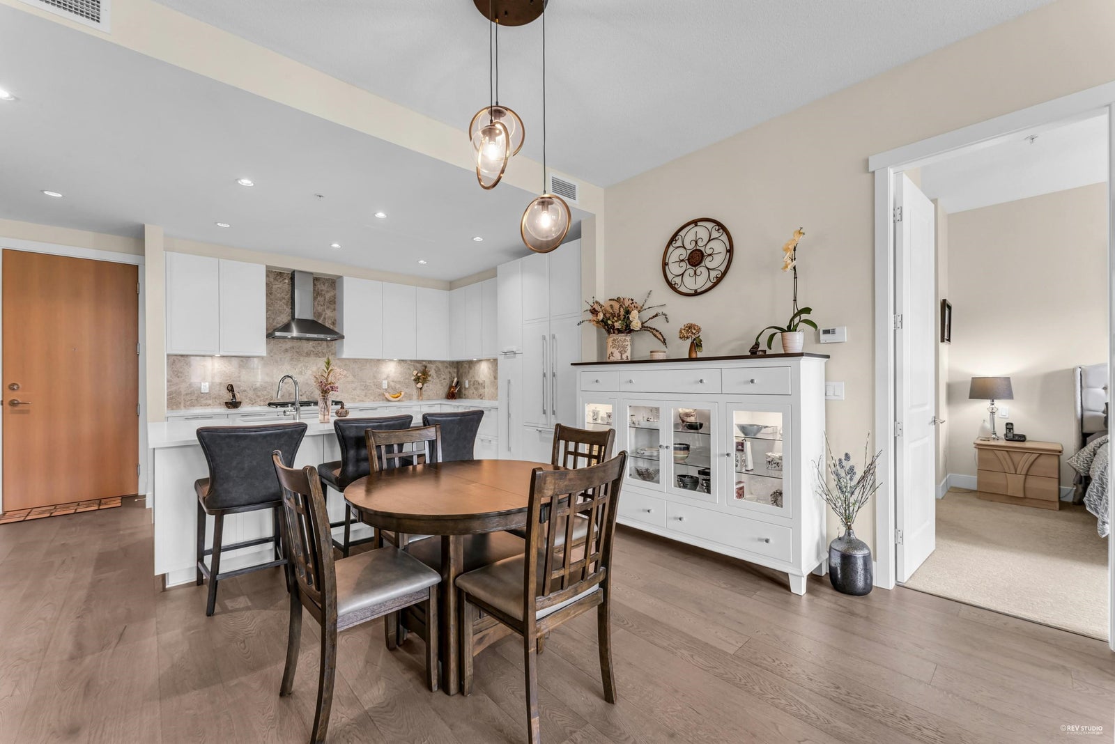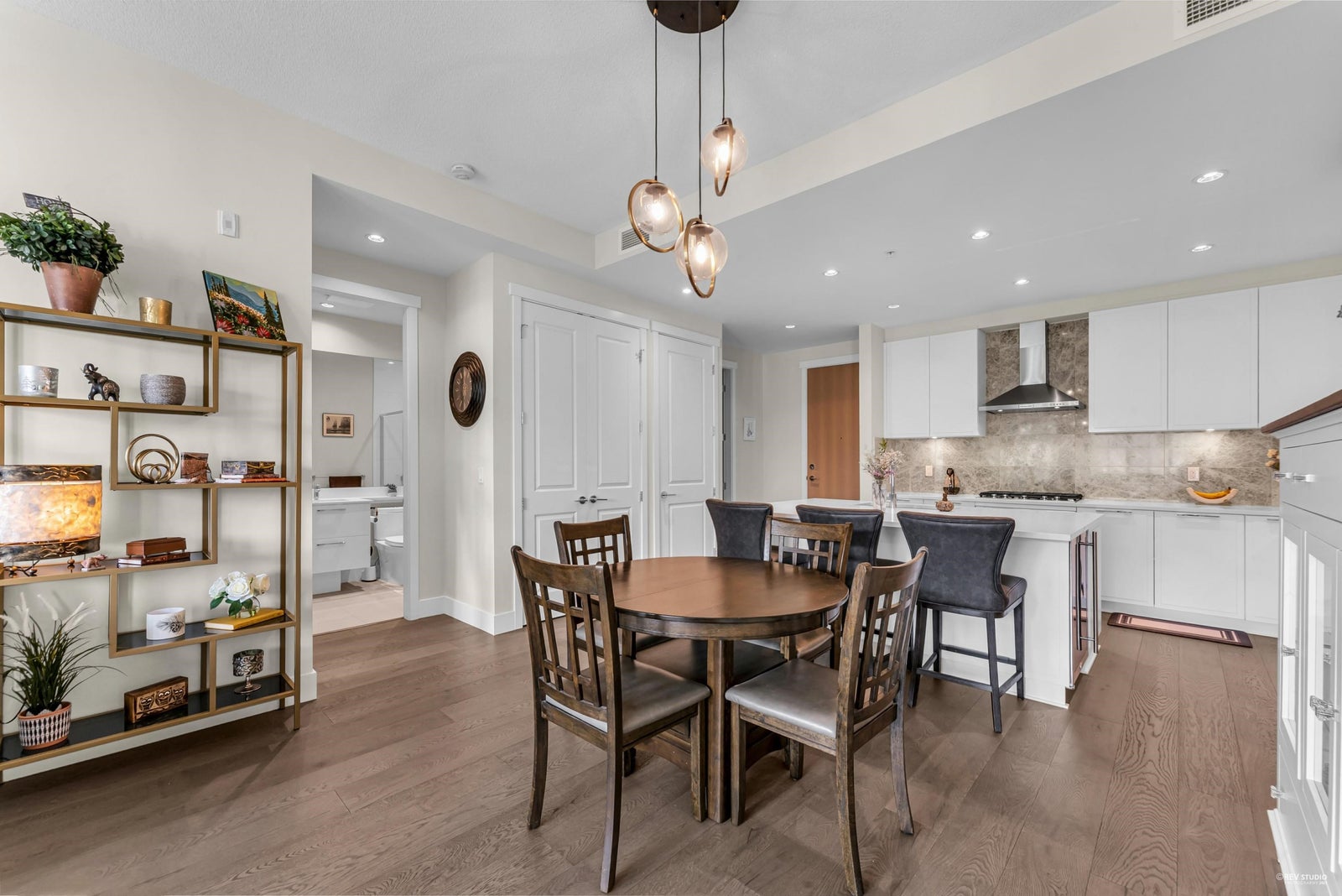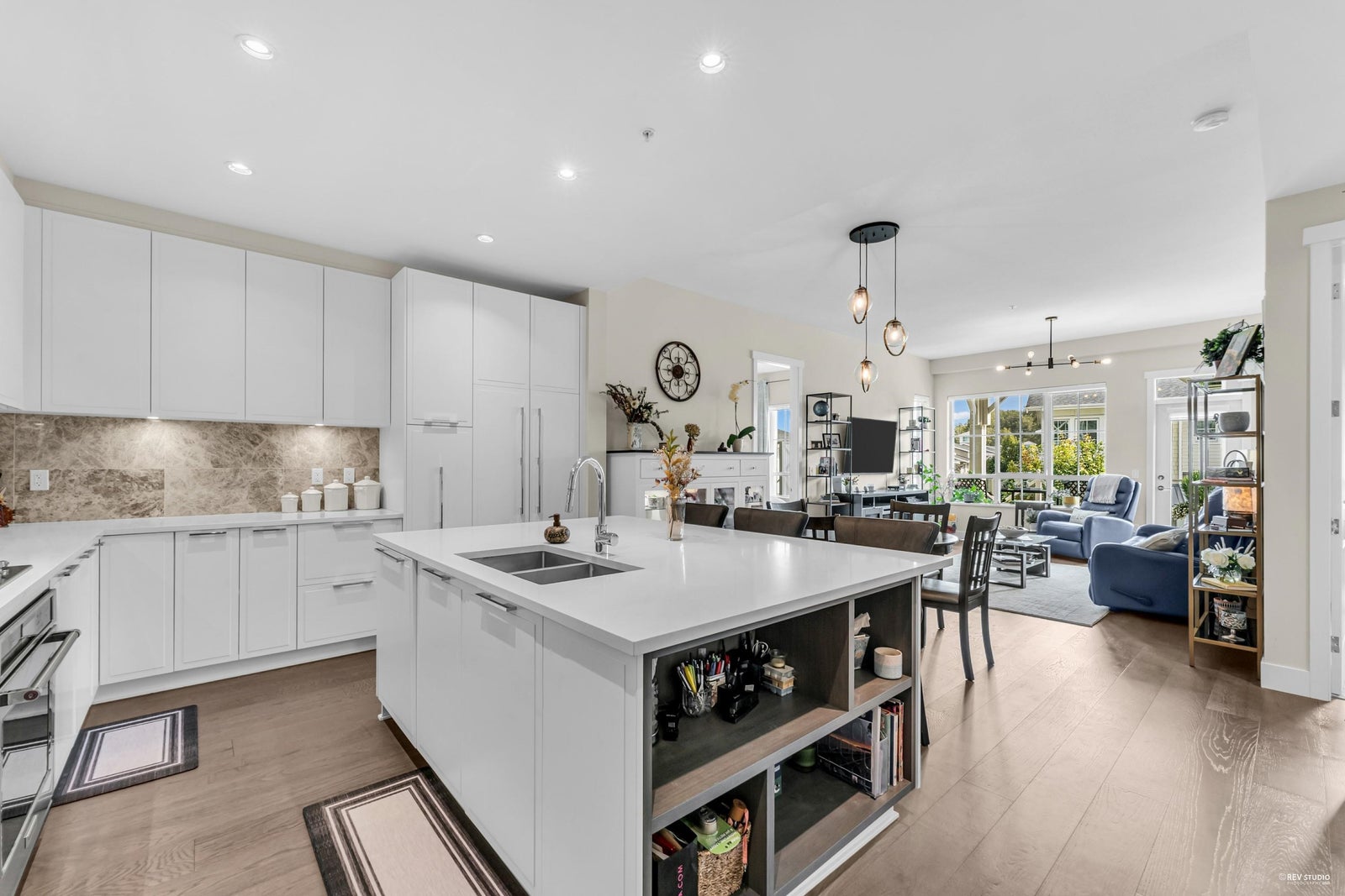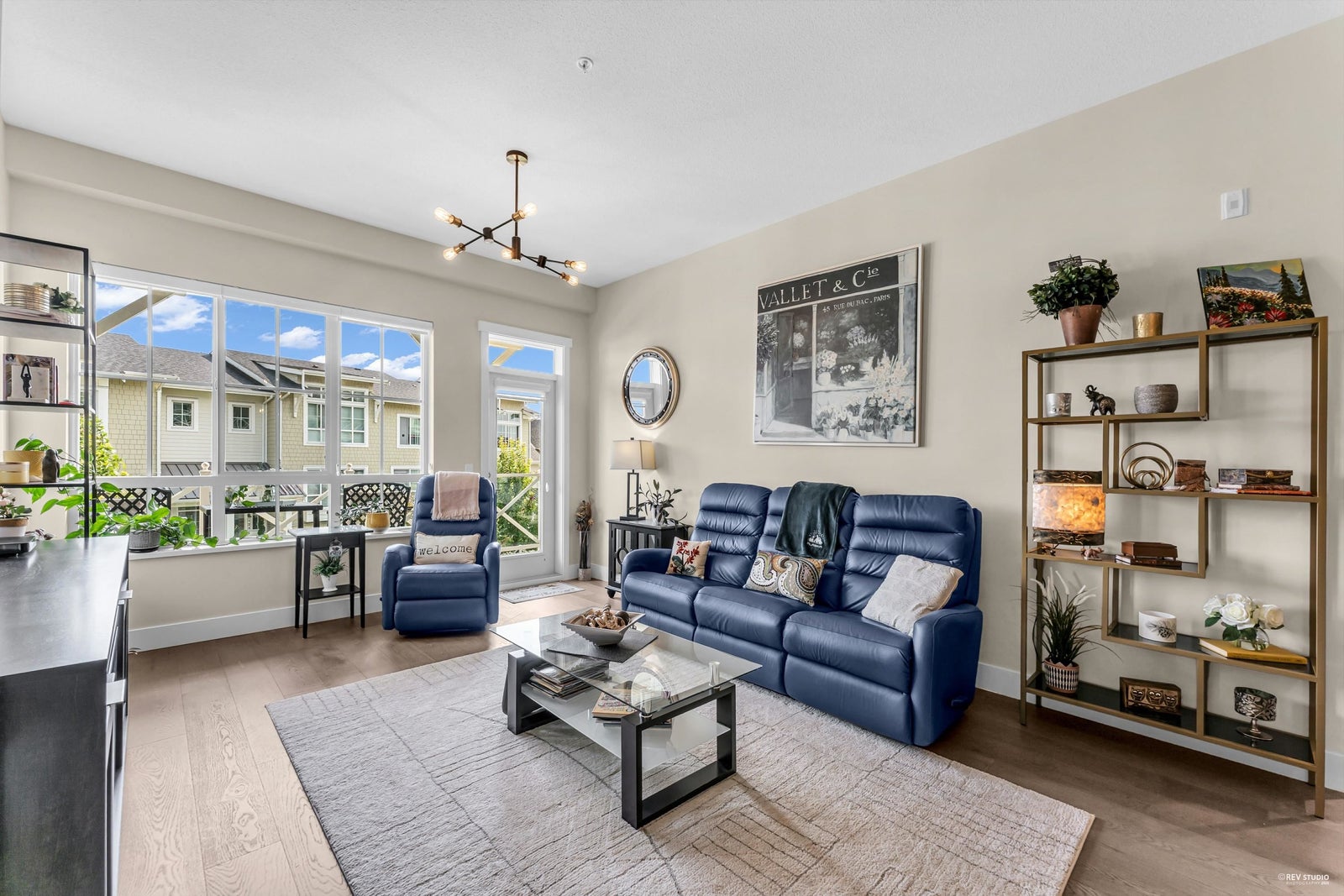 Welcome to Pilothouse by Polygon in Ladner. This boutique complex sits on the banks of Captain's Cove Marina offering serene surroundings with picturesque water views, walking trails, boat launch and more. The home offers bright open concept living with high ceilings throughout, blending functionality with custom lighting & window coverings. Gourmet kitchen with high-end ss appliances, quartz counters and oversized serving island. Master bedroom offers a walk in closet and spa-like ensuite complete with dual vanity and soaker tub. 1 parking stall (EV rough-in) near elevator and 1 private storage room located just down the hall from the unit! Access to the Hampton Club with outdoor pool/hot tub, gym, common room, and guest suite. Spacious balcony with gas BBQ hookup & tranquil marina views.