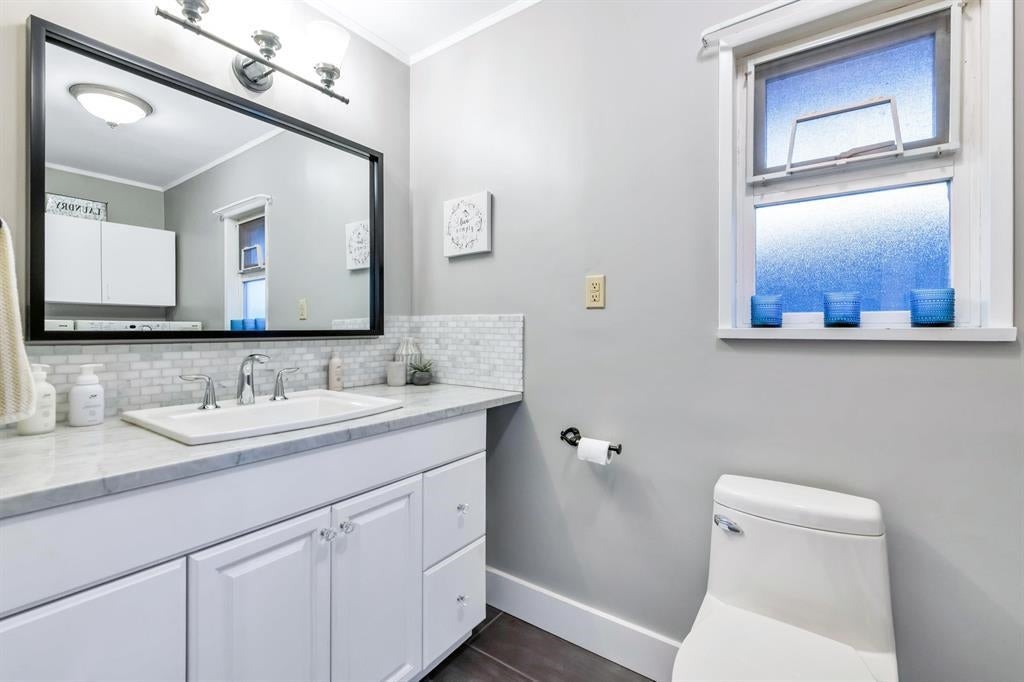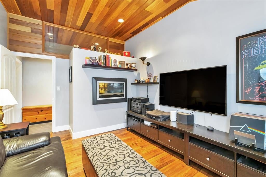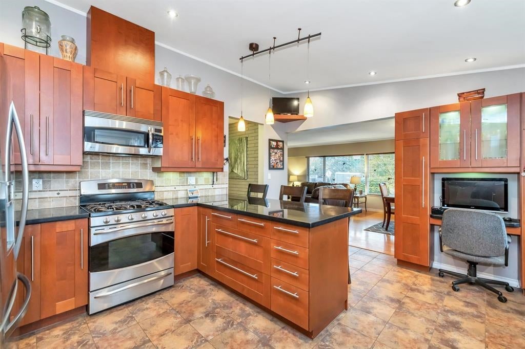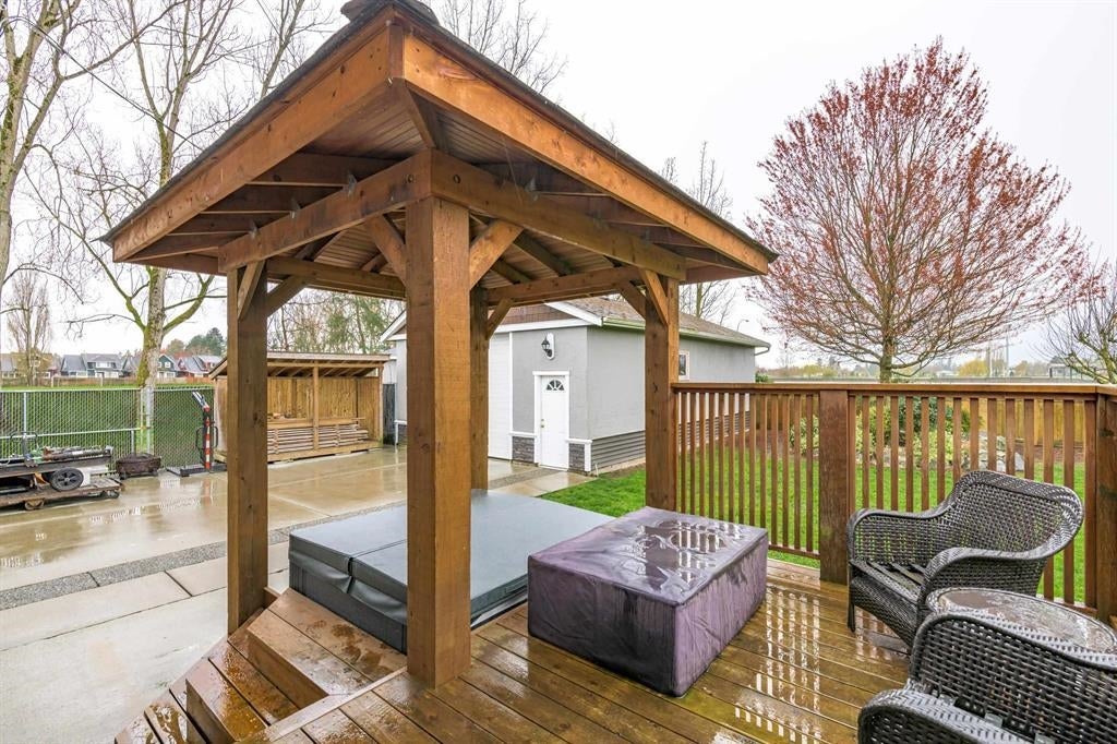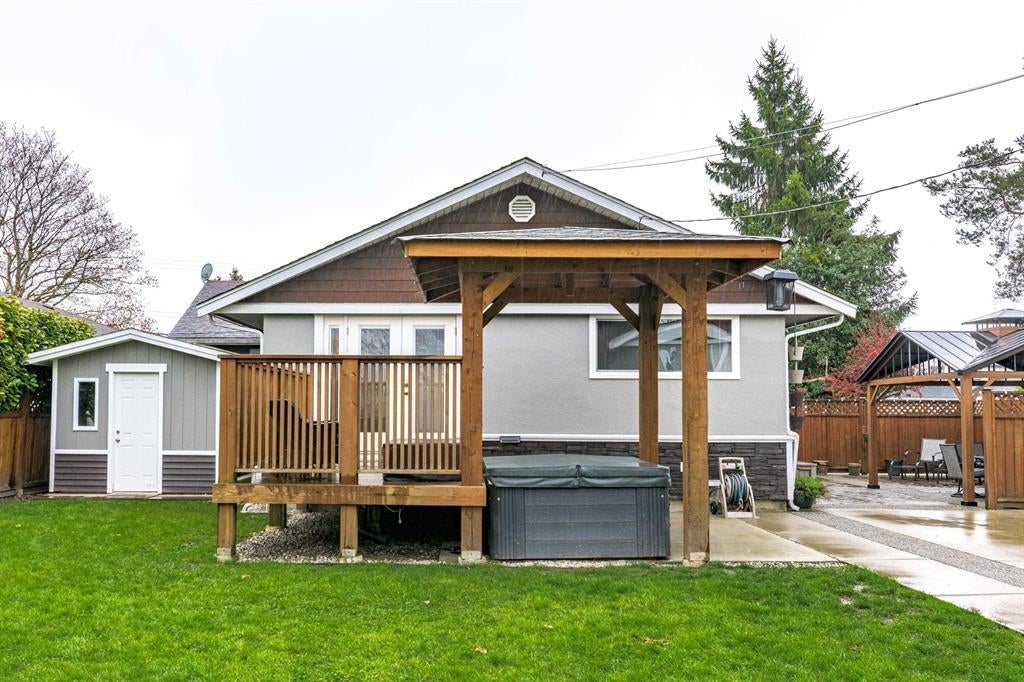 DEVELOPMENT OPPORTUNITY. Delta's New OCP allowing for higher density development options on this prime property with neighboring properties already being redeveloped. This lot is strategically located next to city laneway and overlooking parks. The 3 bedroom home has been lovingly maintained by longtime owner featuring an updated kitchen with vaulted ceiling, granite counters and large eating bar which opens to dining space and living room w/cozy gas fireplace. Other updates include hardwood flooring, thermal vinyl windows, updated bathrooms, laundry room, exterior stonework, sundeck and Hot Tub with covered gazebo. Extra large DETACHED 22' x 38' SHOP/garage with power, heat, bay door, separate insulated office and storage loft. Lots of room for your toys and RV parking.
