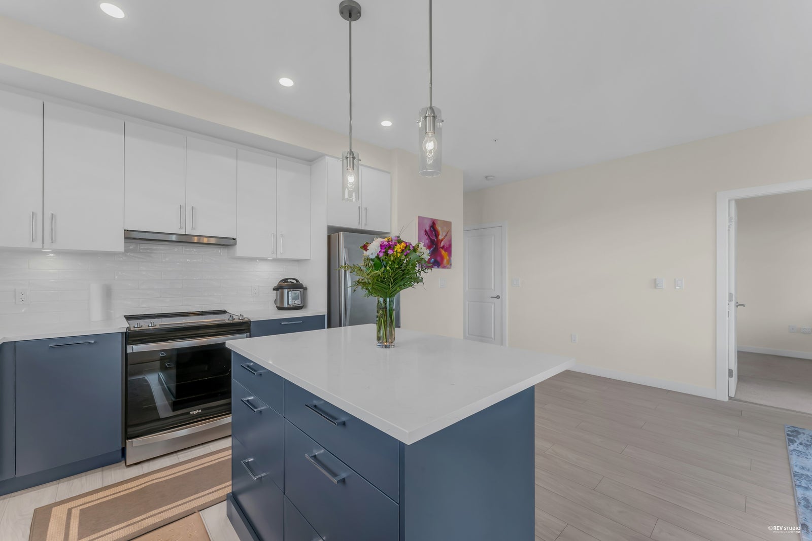 Welcome to Alexander Square in Langley's desirable Willoughby Heights Neighborhood. Enjoy this bright corner unit with unobstructed West & North facing views. Overlooking Willoughby Heights Elementary School and steps away from Willoughby Town Centre, this community has all of the modern conveniences at your fingertips. The home itself features 2 bedrooms, 2 full bathrooms and close to 850 sq.ft of bright open concept living space. Enjoy designer finishes throughout including gourmet kitchen with large serving island, s/s appliances, quartz countertops and soft close cabinetry, designer lighting, spa-like bathrooms and 9ft ceilings throughout. BONUS: This unit comes with 2 side by side parking stalls. Amenities include a common room, gym, rooftop deck with BBQs and firepits