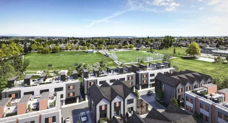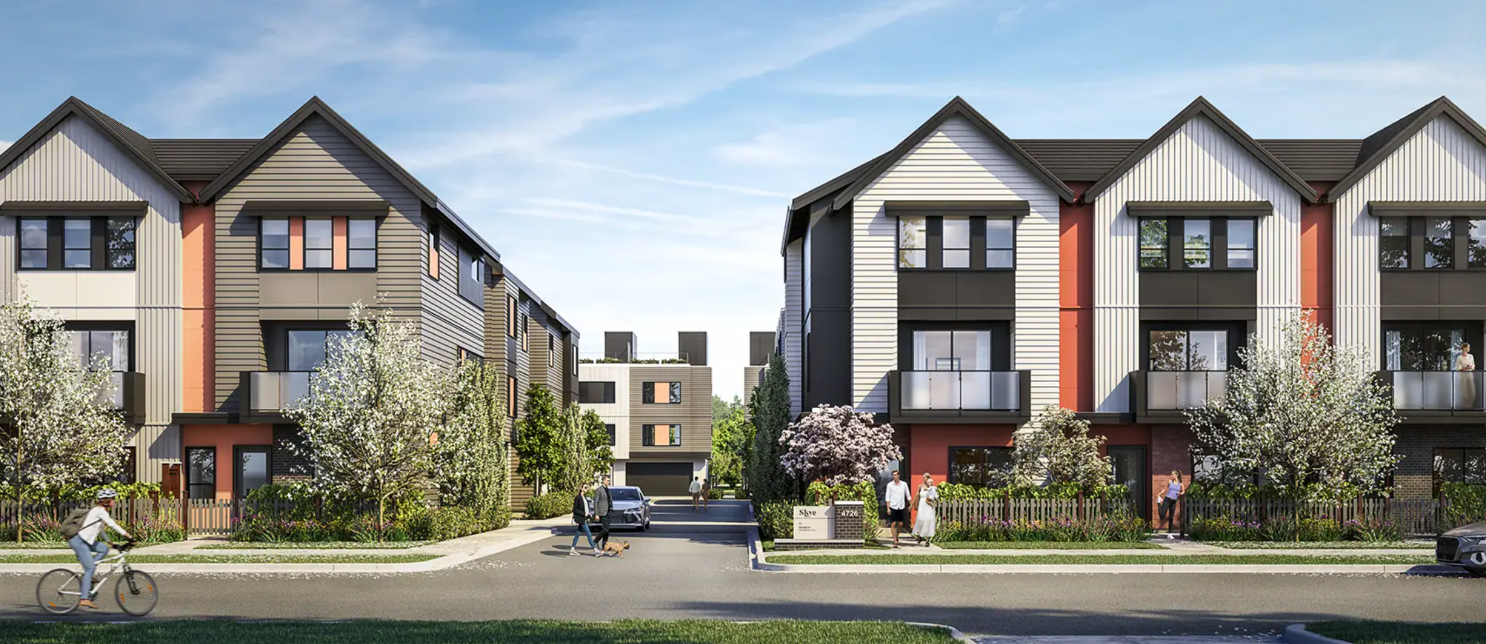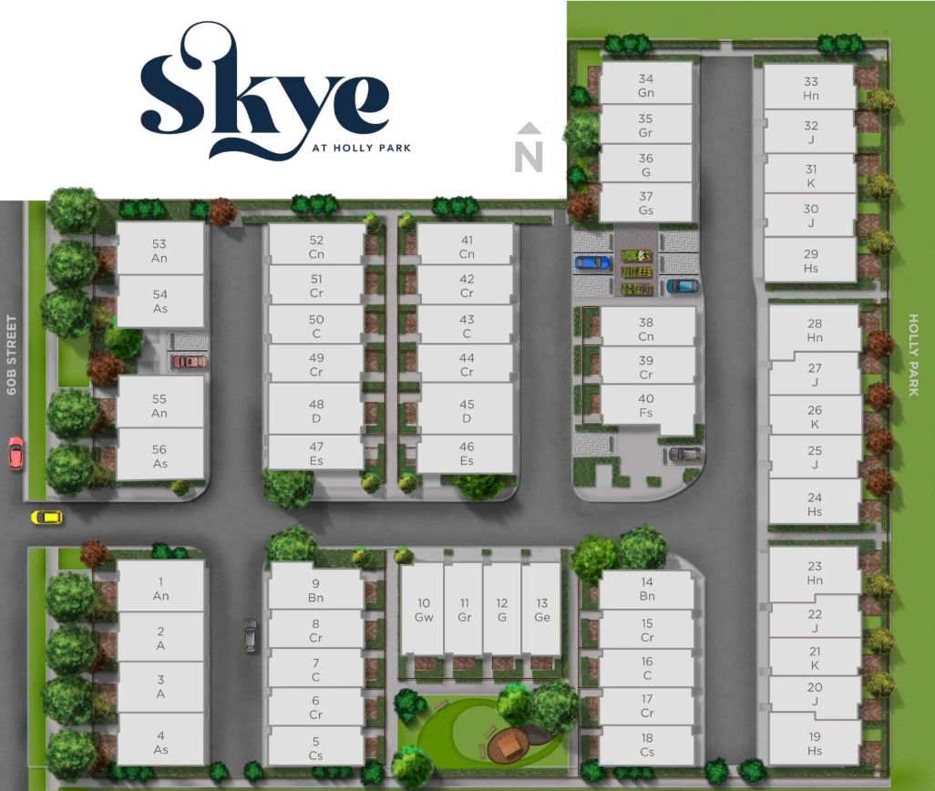Discover urban elegance at SKYE Townhomes, where modern living meets expansive skies, parks, and the serene beauty of Holly Park. Designed by BÜRO47 and inspired by Scandinavian aesthetics, SKYE townhomes feature transitional arts & crafts-style architecture. With bold accents and sophisticated color palettes, each home exudes character. Many residences include rooftop patios that overlook Holly Park and have breathtaking views of Mount Baker to the North Shore Mountains. SKYE exteriors are timeless, blending classic and modern elements with a variety of architectural styles to choose from